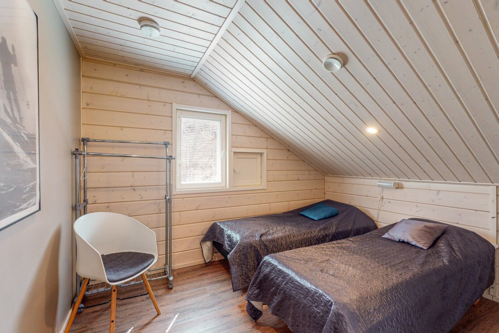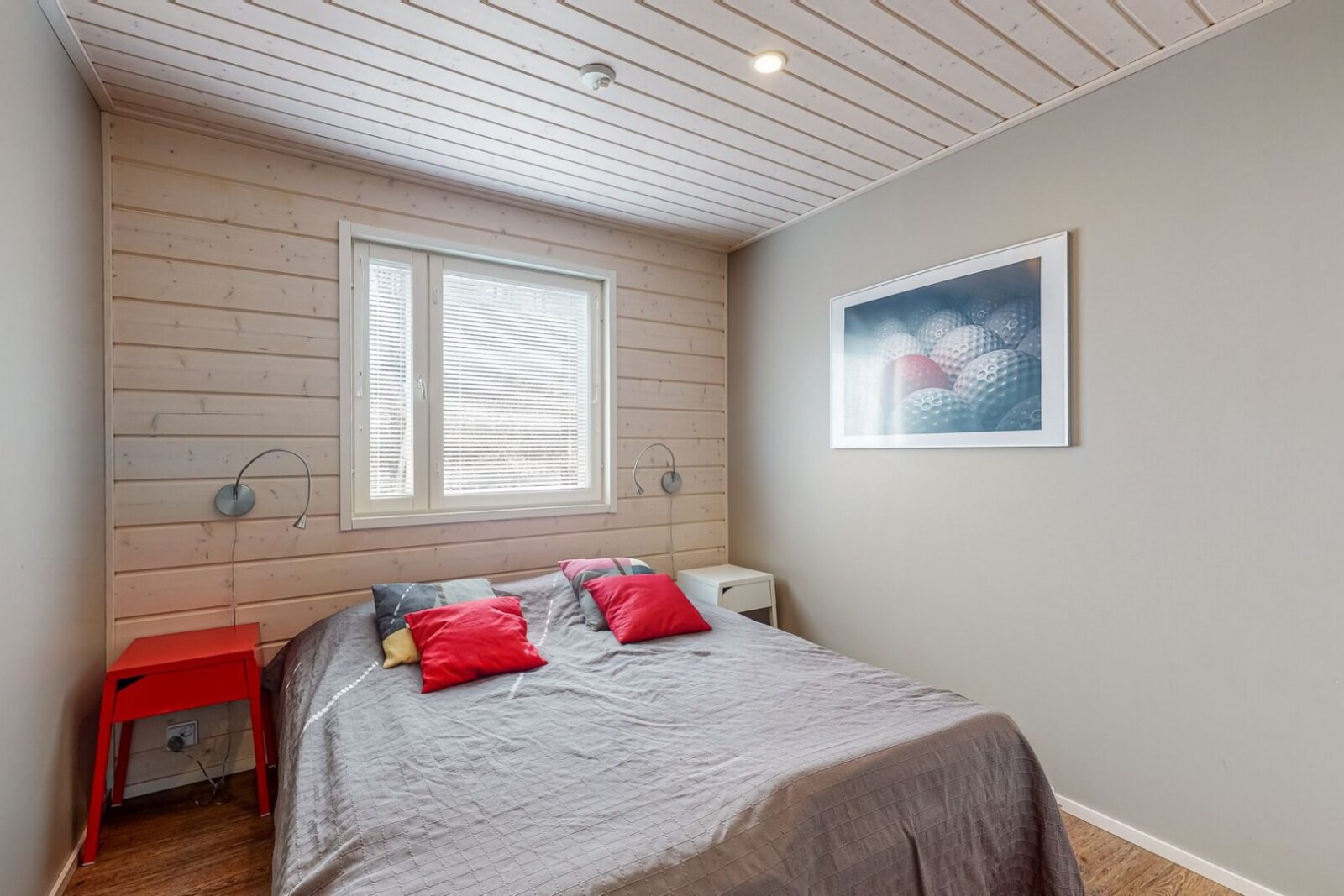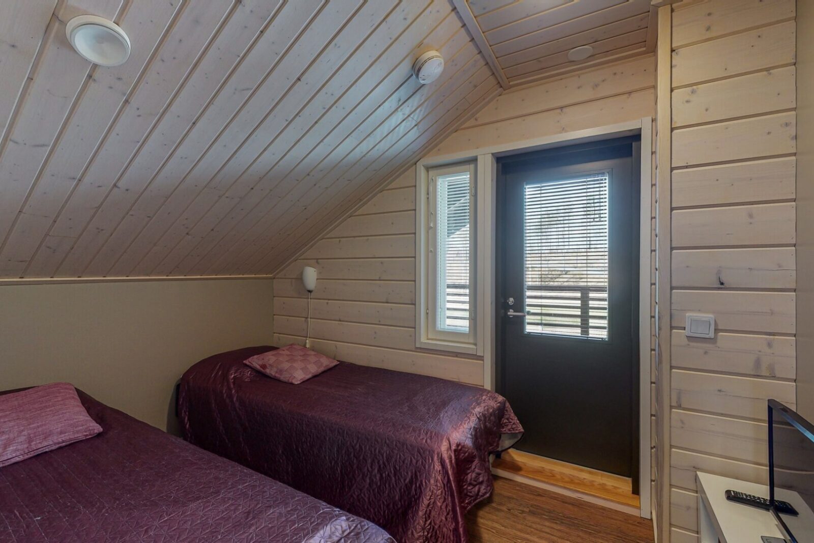 Alakerrassa on yksi makuuhuone, jossa kaksi erillistä vuodetta. Yläkerrassa on kaksi makuuhuonetta, joissa molemmissa kaksi erillistä vuodetta ja saa parivuoteeksi sekä parveke. Toisessa makuuhuoneessa Smart tv.