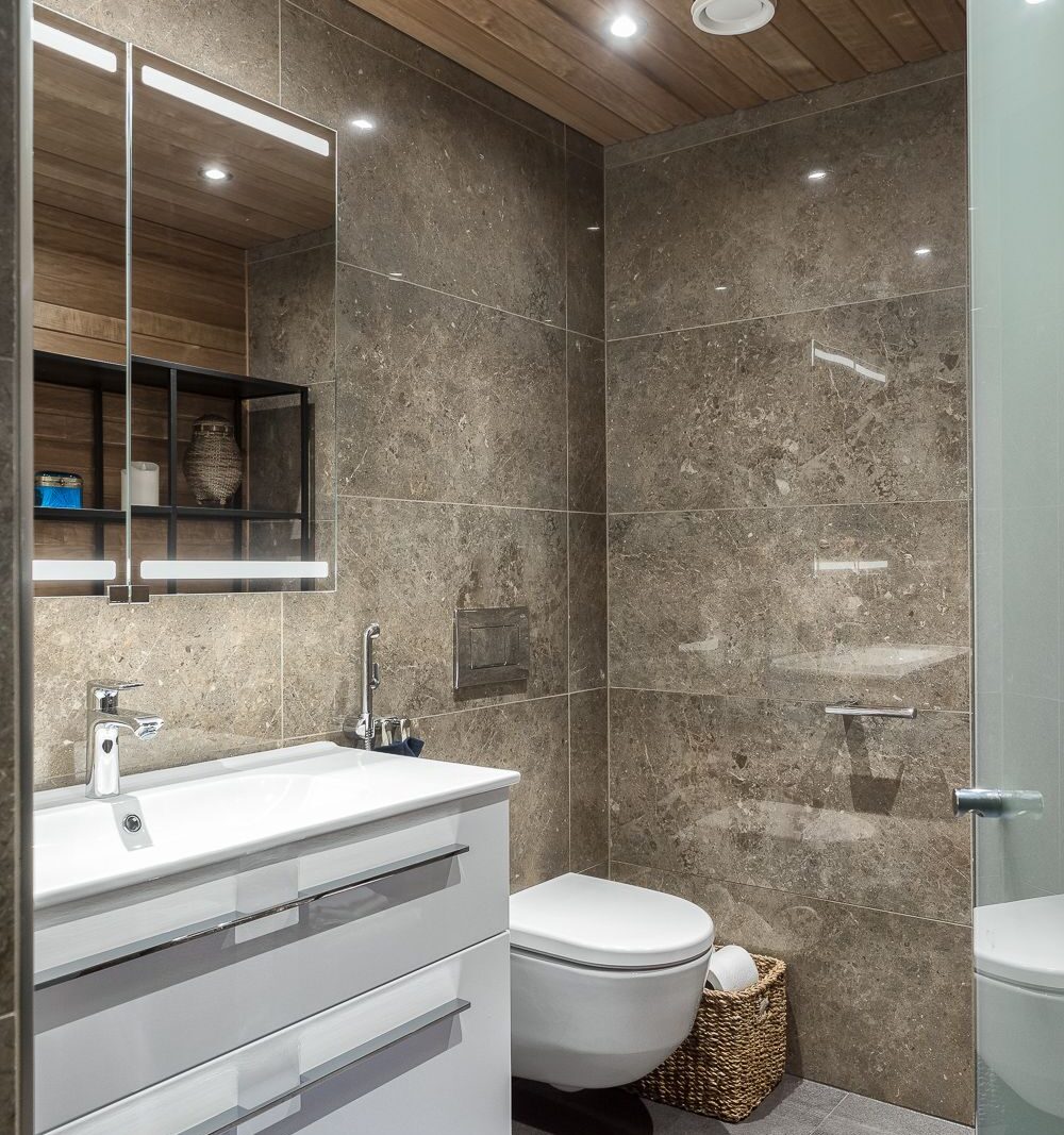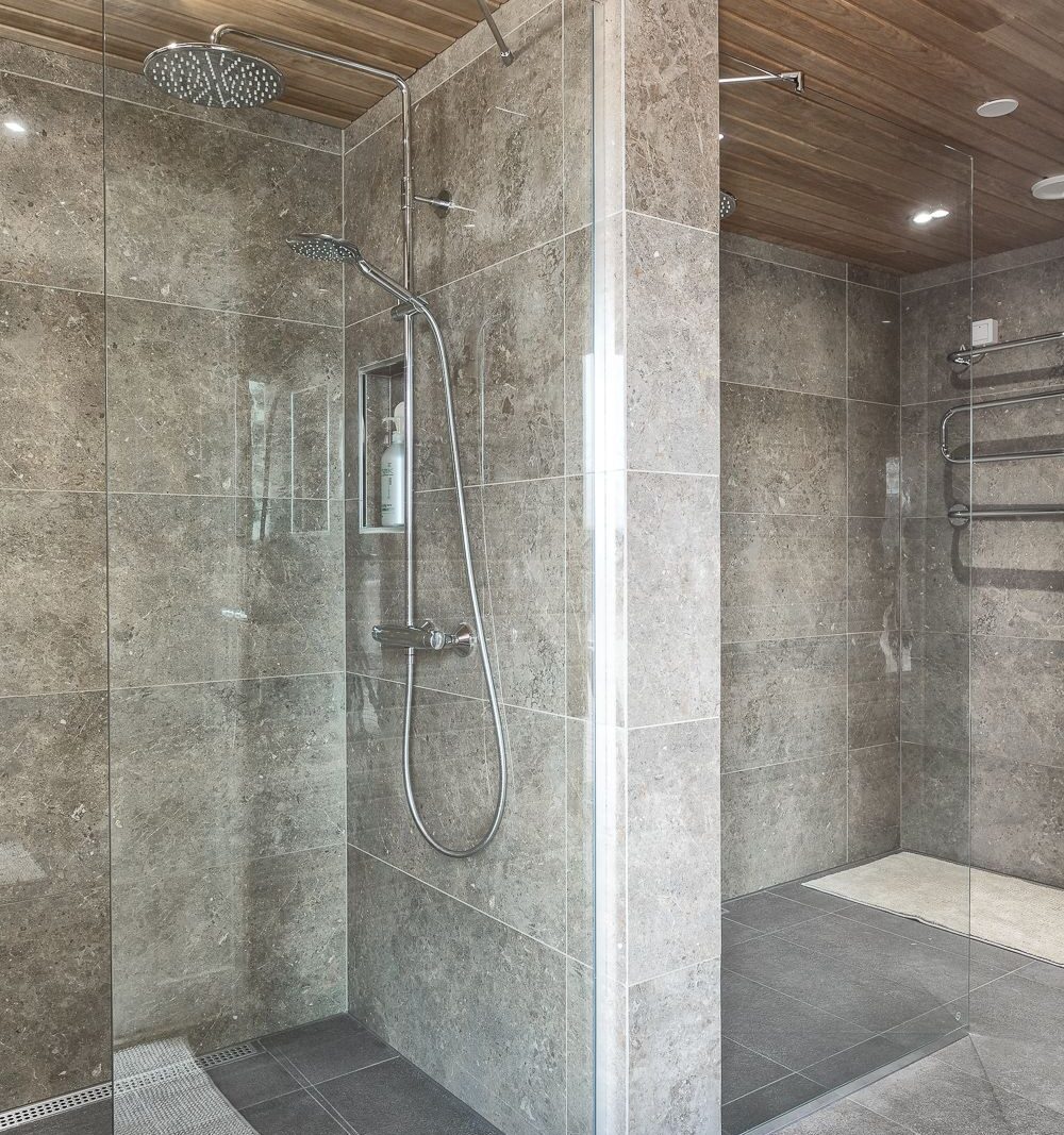 Tunnelmallisessa saunassa otat makoisat löylyt golfkierroksen tai ulkoilun päätteeksi. Kodinhoito-/pukeutumistila on pesuhuoneen yhteydessä ja kylpyhuoneesta pääset kätevästi terassille nauttimaan ulkoporealtaan lämmöstä. Kylpyhuoneessa on kaksi erillistä suihkua sekä erillinen wc..
