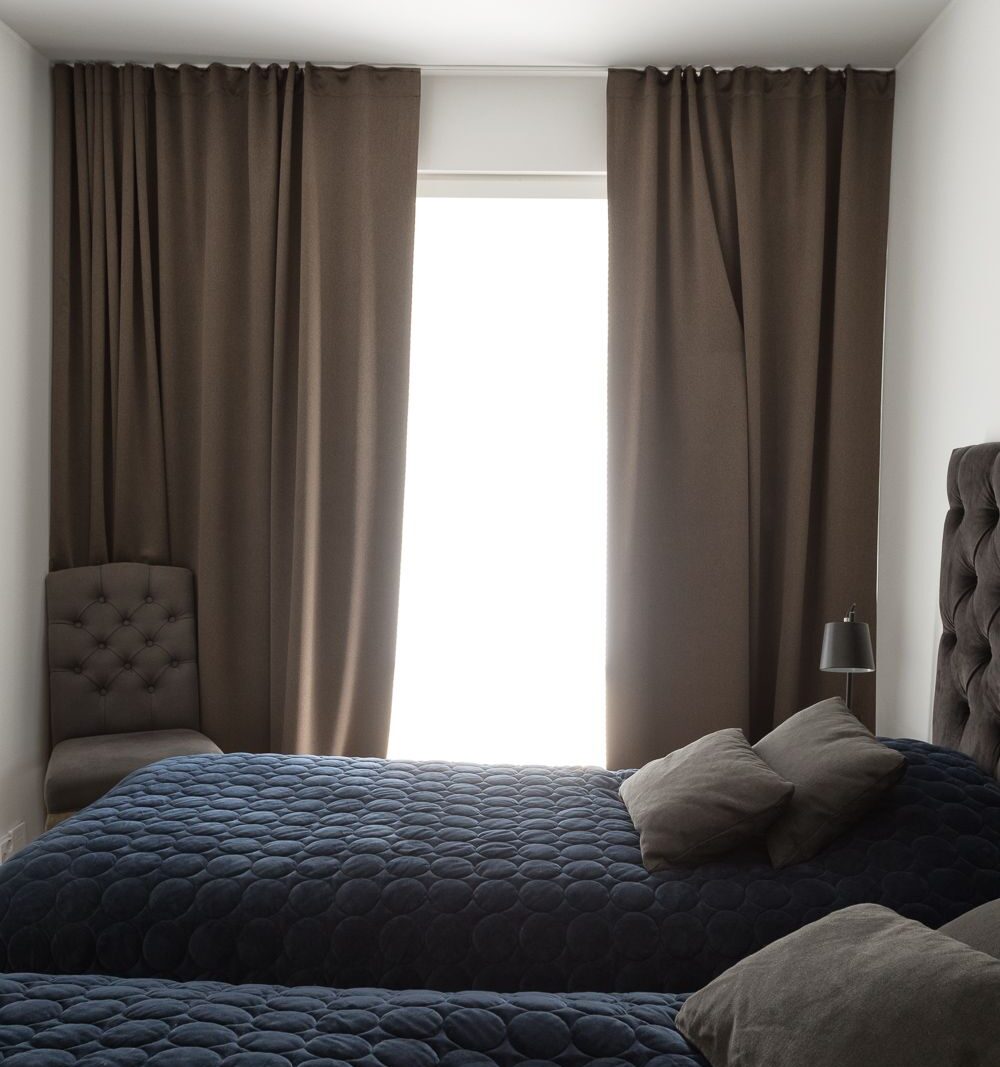 Isommassa makuuhuoneessa löytyy parisänky ja toisessa makuuhuoneessa kaksi yhden hengen sänkyä.